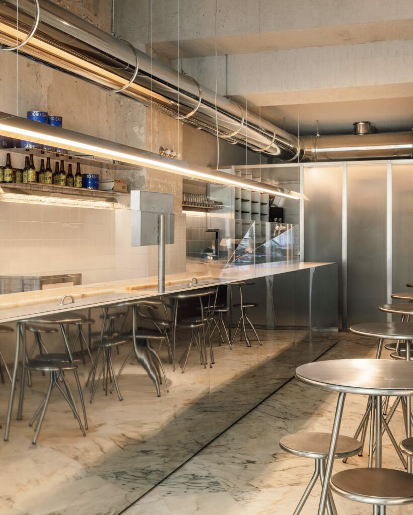 Lupita’s new Alvalade spot hits like architecture dipped in fire, and it’s built to age like steel. The studio responsible for this? XXXI.studio, who describe themselves as “driven by a duality between chaos and beauty,” and damn if this space doesn’t deliver on that promise. This is pizza as structural spectacle: reflective steel, exposed surfaces, and a layout that trusts the material honesty of industrial design to carry the mood.